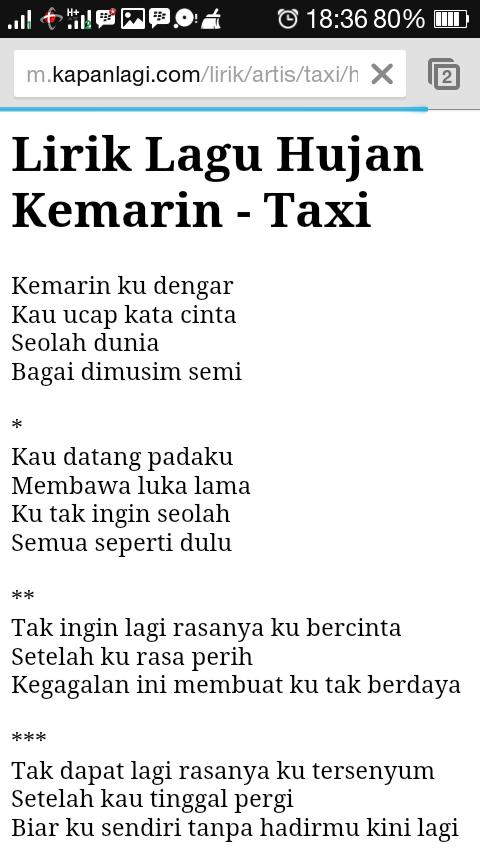 Lirik Lagu Hujan Kemarin Taxi Merdeka Com