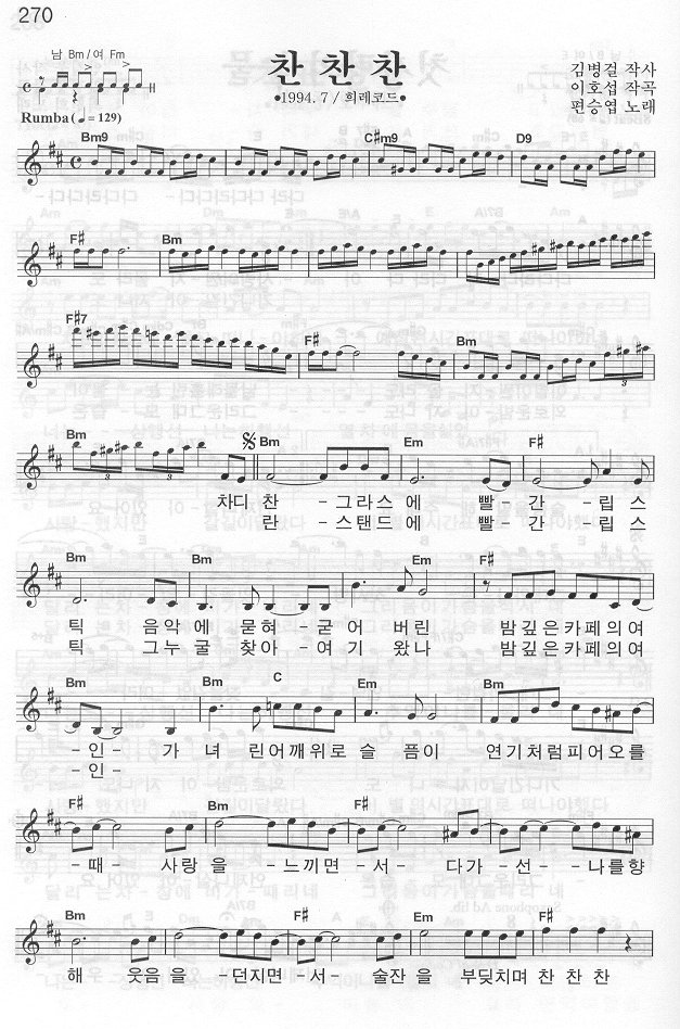 편승엽 - 찬찬찬 기타코드악보입니다. 음악에 묻혀 굳어버린 밤깊은 까페에 여인. 여담으로 해당곡의 리메이크인 NINJA의 오마츠리 닌자를 룰라 가 표절하여 5 나락으로 떨어졌다.