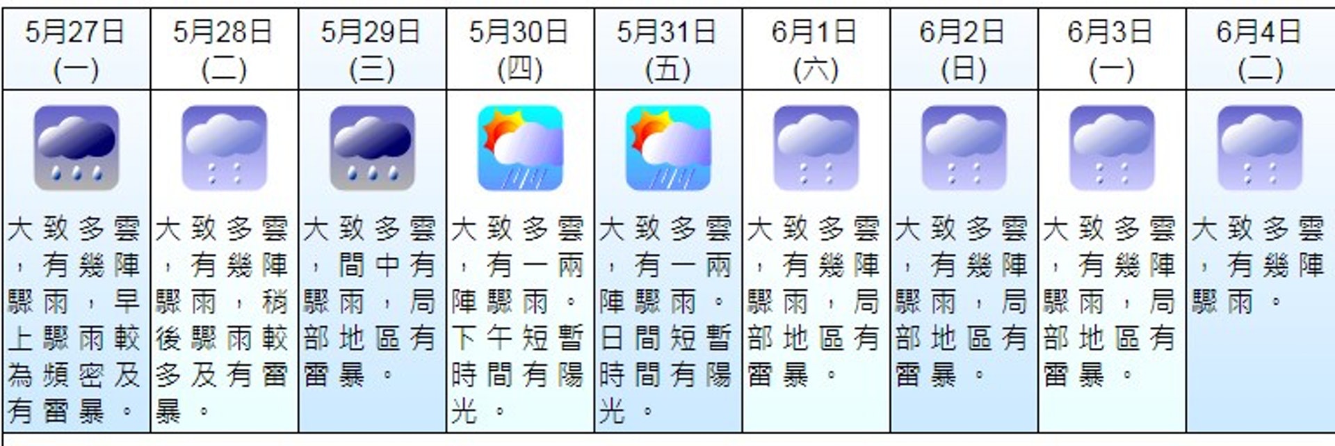 香港天文台hko 酷熱天氣 今日 14 5 局部地區雖然曾受大驟雨及雷暴影響 但天氣仍然酷熱 天文台總部錄得34 0度高溫 是今年以來最高 展望星期六 日繼續酷熱 大家記得補充水分 提防中暑 九天天氣預測 Https Url Hko Hk Fnd 9 Day Weather Forecast